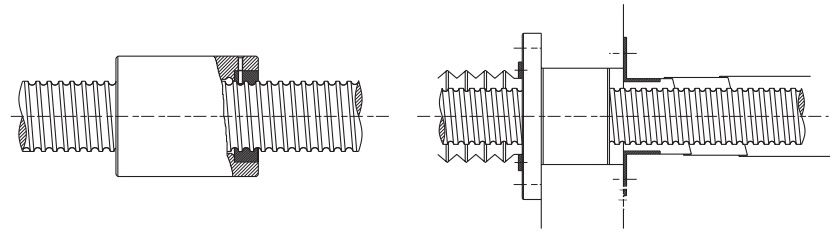 滾珠螺桿與滾動軸承一樣,當有異物混入或水分等情況時磨損會增加,有時會導(dǎo)致?lián)p壞。例如工作機械由于作業(yè)環(huán)境的關(guān)係,可能會混入切屑或切削油。因此當有異物從外部混入的可能時,應(yīng)如圖 所示,以折布 ( 蛇腹型 ) 或套筒伸縮管等,完全罩住螺桿軸。