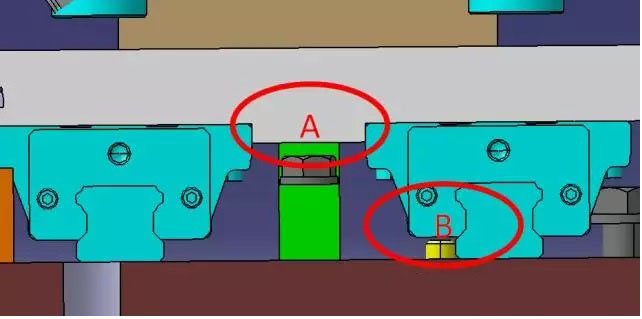 紅色圈A: 所指位置兩個(gè)滑塊的內(nèi)側(cè)都做了限位