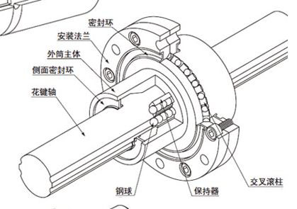 旋轉(zhuǎn)式滾珠花鍵則是在花鍵外筒的外徑上加裝專用的旋轉(zhuǎn)外套,使之運轉(zhuǎn)動作。有效提高滾珠花鍵的扭力矩、