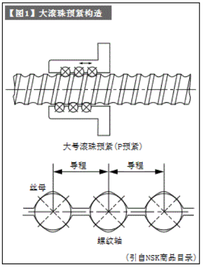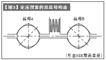 所謂預(yù)緊(定義:JIS B 1192)為了減小滾珠絲杠的間隙,提高剛性,使用一組滾珠,或者一對(duì)絲母沿軸向相互位移而施加在滾珠絲杠上的力。