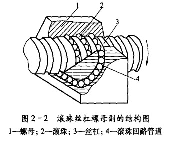 滾珠絲杠螺母副(圖2-2)是直線運(yùn)動和傳遞運(yùn)動相互轉(zhuǎn)換的傳動裝置,它是射給傳動的主要部件,其運(yùn)行是否正常,直接影響工件的加工質(zhì)量。